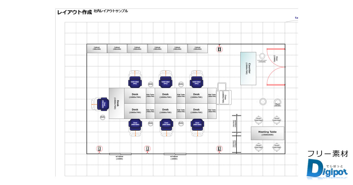こちらのデータは無料でダウンロードが可能なので、気になる方はぜひチェックしてください。オフィス内の曖昧な寸法も、こちらのツールを活用すればよりレイアウトがハッキリしますよ。デスクやキャビネット、椅子などのパーツもあり、サイズも自由に変えられて便利です。